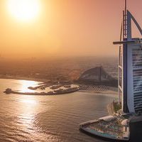 Este hotel está situado en su propia isla, con impresionantes vistas al mar desde todo el edificio. La torre de 56 pisos cuenta con 32 cabañas de lujo, ventanales y iPads en la suite para uso de los huéspedes. El Sky View Bar ofrece té por la tarde, cócteles y conversación, suspendido a 656 metros sobre el nivel del mar para disfrutar de unas vistas impresionantes del Golfo Arábigo. El hotel está a sólo 13 millas del aeropuerto de Dubai, a corta distancia de Madinat Jumeirah, Aquaventure Water Park, Montgomery Golf Club Dubai, City Walk Mall y otras atracciones.