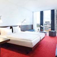 The location is great, located very close to city center and to the Elbe with a very nice view. We asked for a room in a higher floor and it has been accomplished. Hotel bar on the top floor with a great view to Elbe and harbour.
